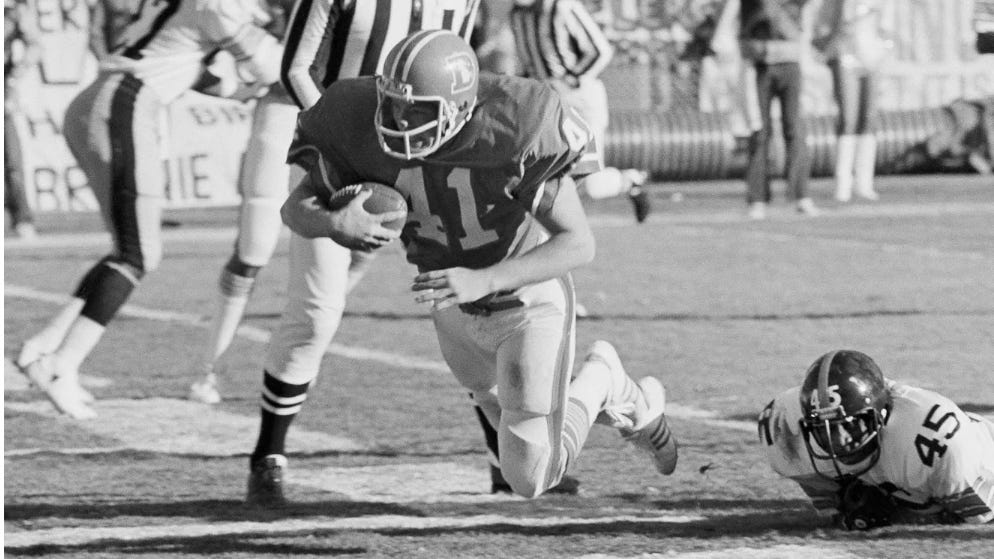 As a ten-year old, Dad walked around with close-cut reddish hair and freckles while wearing ankles weights and carrying a football wherever he went. He told his older sisters he’d one day run in the NFL. Same for his teachers. Football, for Dad, was magic, and the magic of football was in the minutiae of each football play.